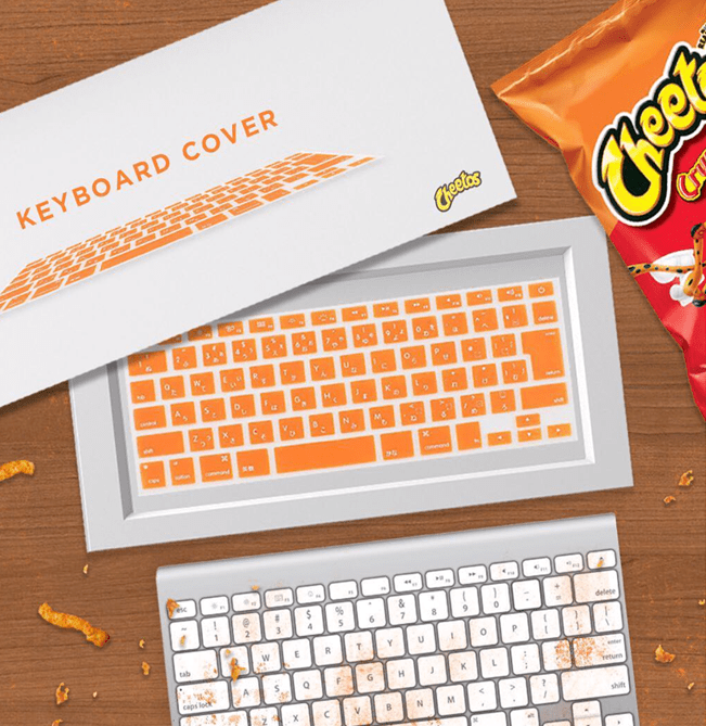 Cheetos’tan sevenlerinin yüzünü güldürecek bir yenilik. Klavye kılıfları sayesinde artık cips kırıntıları klavyemizi esir alamayacak. Eee Cheetos efendi, bu derdi başımıza sen açtın, pek tabi devasını da sen bulacaktın.